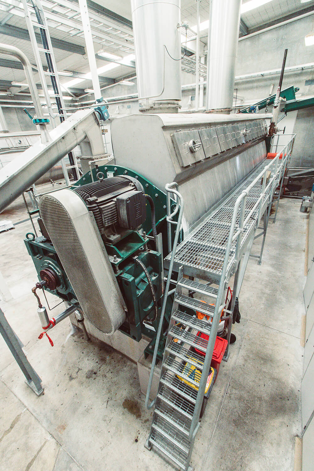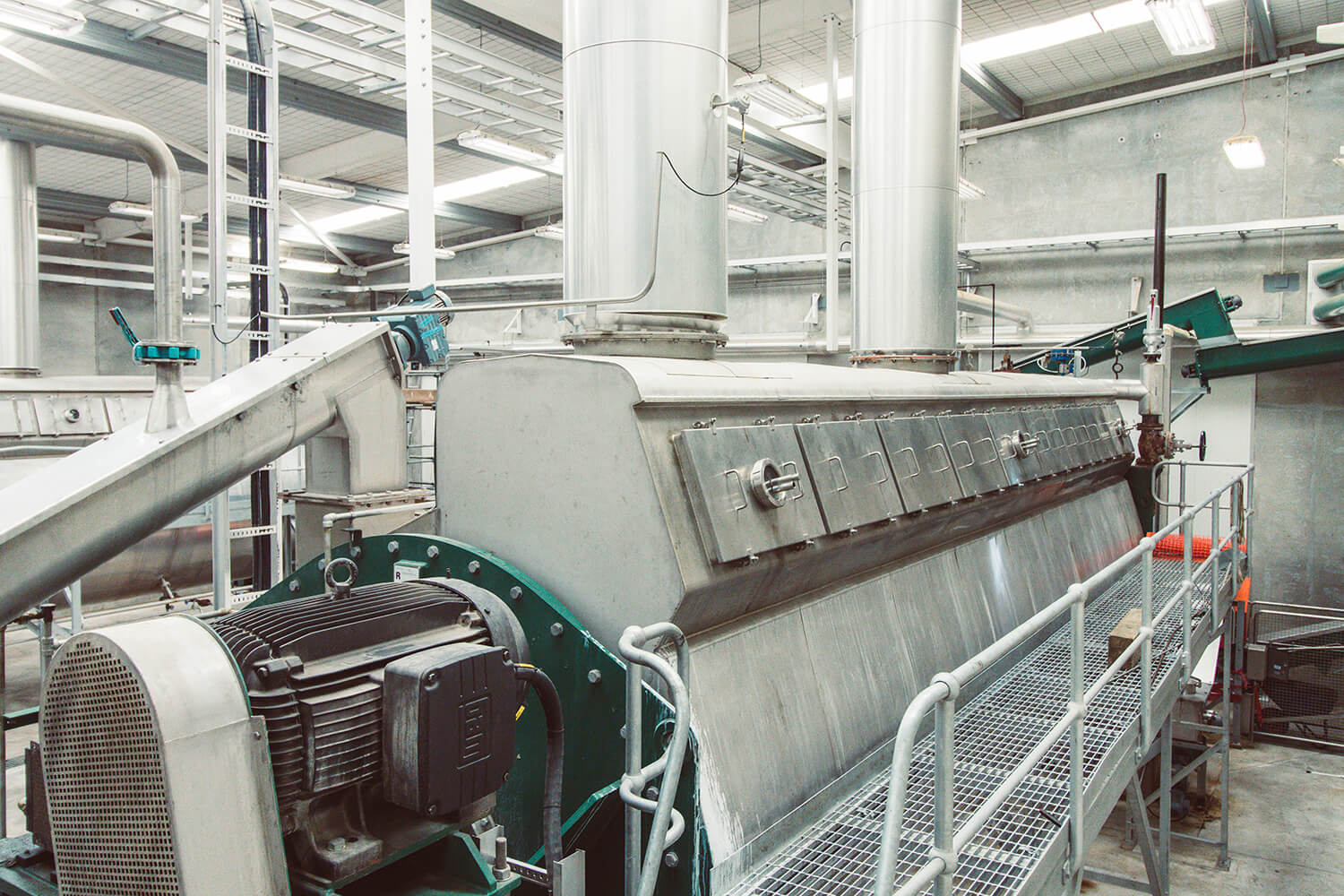 The Rendertech Contact Drier (CD) is an indirect steam-heated, continuous drier for drying a variety of granular and fluid products. The construction consists of a horizontal shell with disc rotor for heating and transport of the product. The rotor comprises a tubular shaft carrying a number of steam-heated hollow discs. Fitted to the edge of the discs are agitator blades to transport the material along the drier. The design provides a large heating area in a compact footprint.